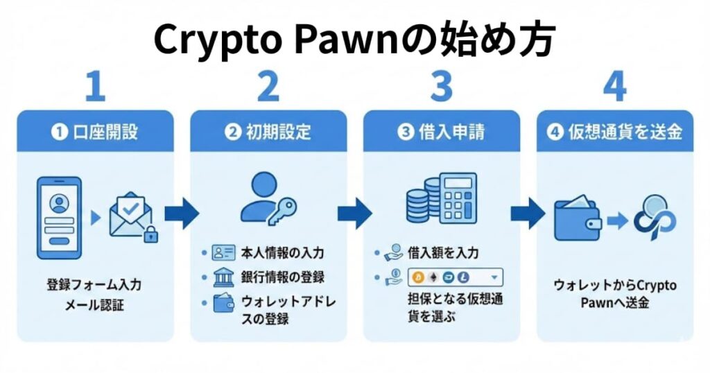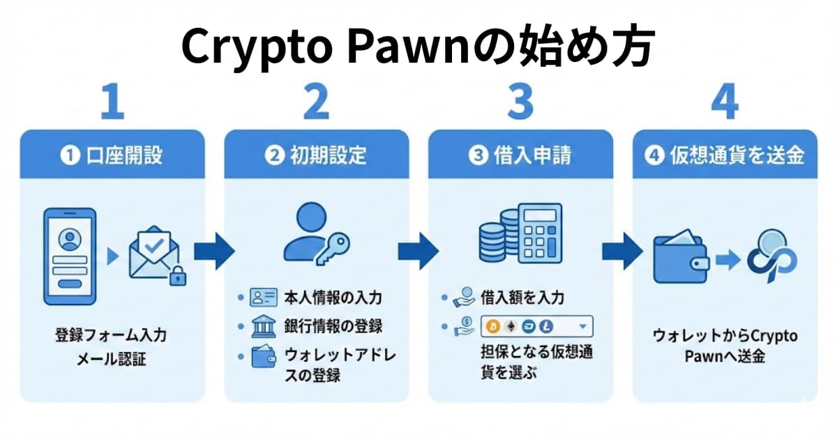 本記事では、Crypto Pawnの利用が初めての人でも安心して始められるよう、事前準備から実際の借入手順、返済方法までの全プロセスを詳しく解説します。