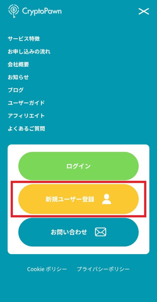準備が整ったら、いよいよCrypto Pawnのアカウント登録を進めていきましょう。