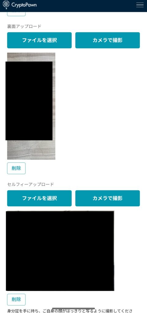 事前に準備した本人確認書類(運転免許証、パスポート、マイナンバーカードなど)をアップロードします。