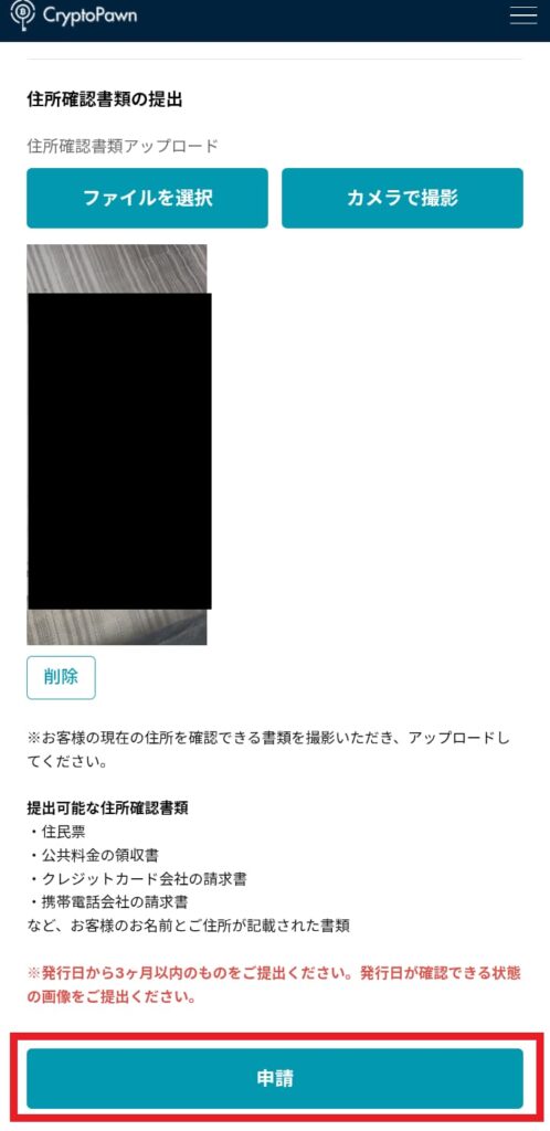 本人確認書類に加えて、現住所を証明する書類も必要です。