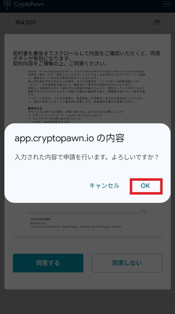 Crypto Pawnで現金を借り入れるまでの流れは、以下の通り。