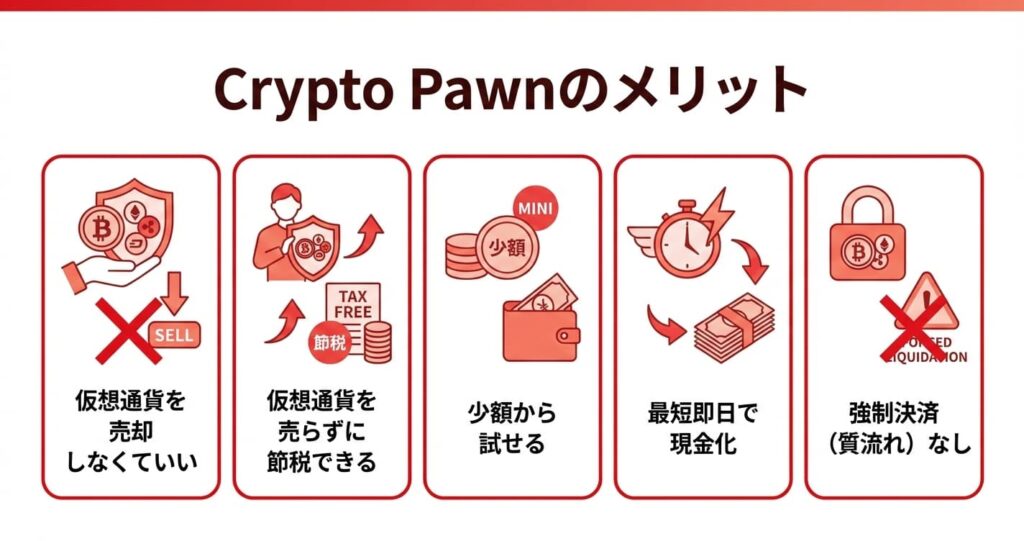 本記事では、仮想通貨担保ローンの中でも特に個人利用に適したCrypto Pawnについて、メリット・デメリットから他社比較、実際の利用方法まで徹底解説していきます。