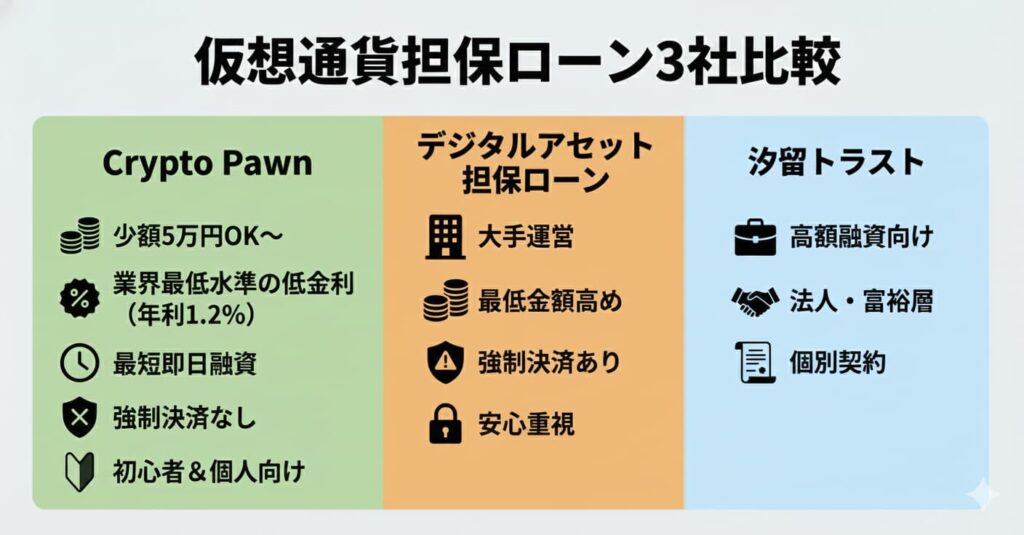 • 「Crypto Pawn」vs「他社仮想通貨担保ローン」徹底比較